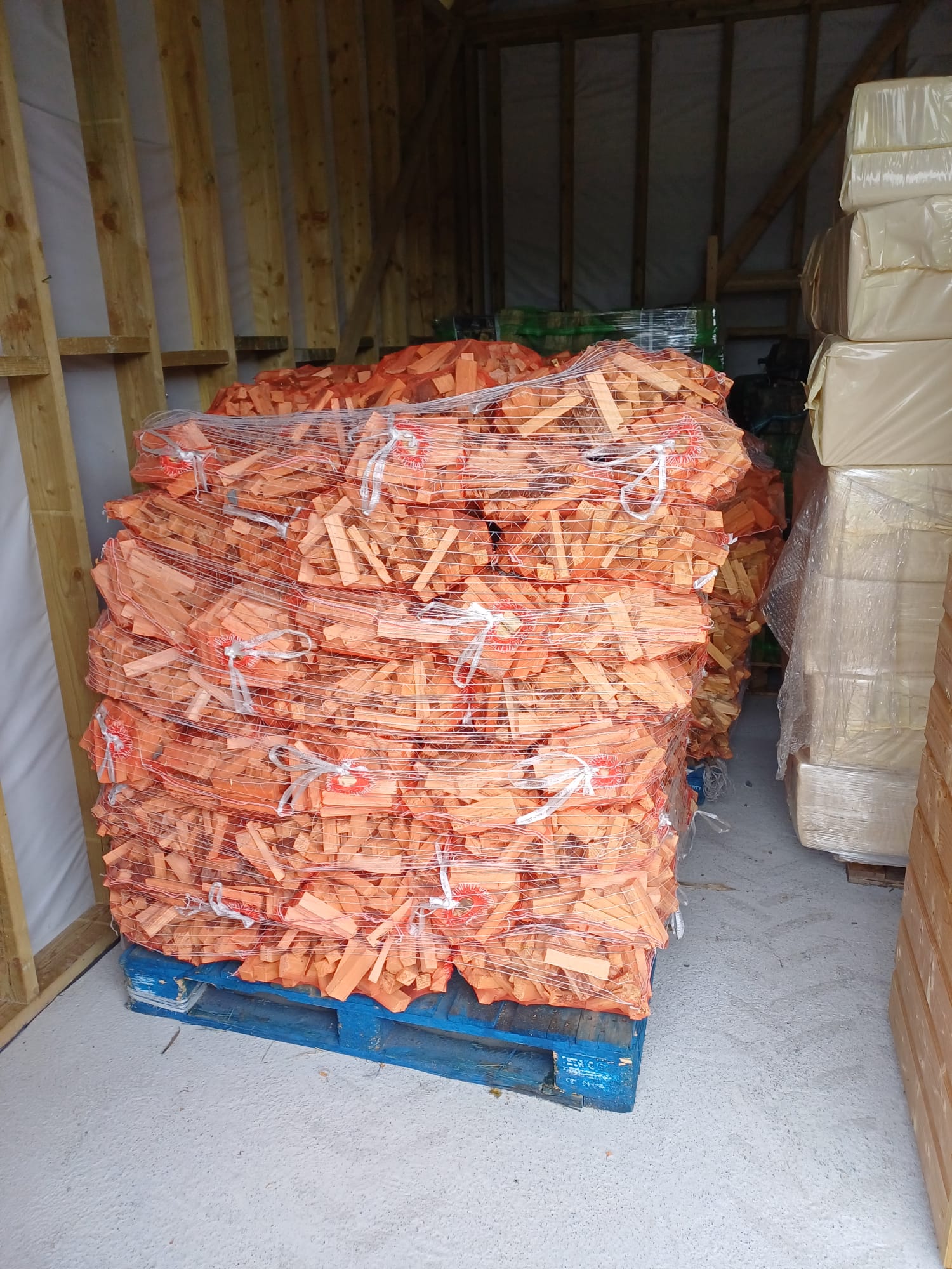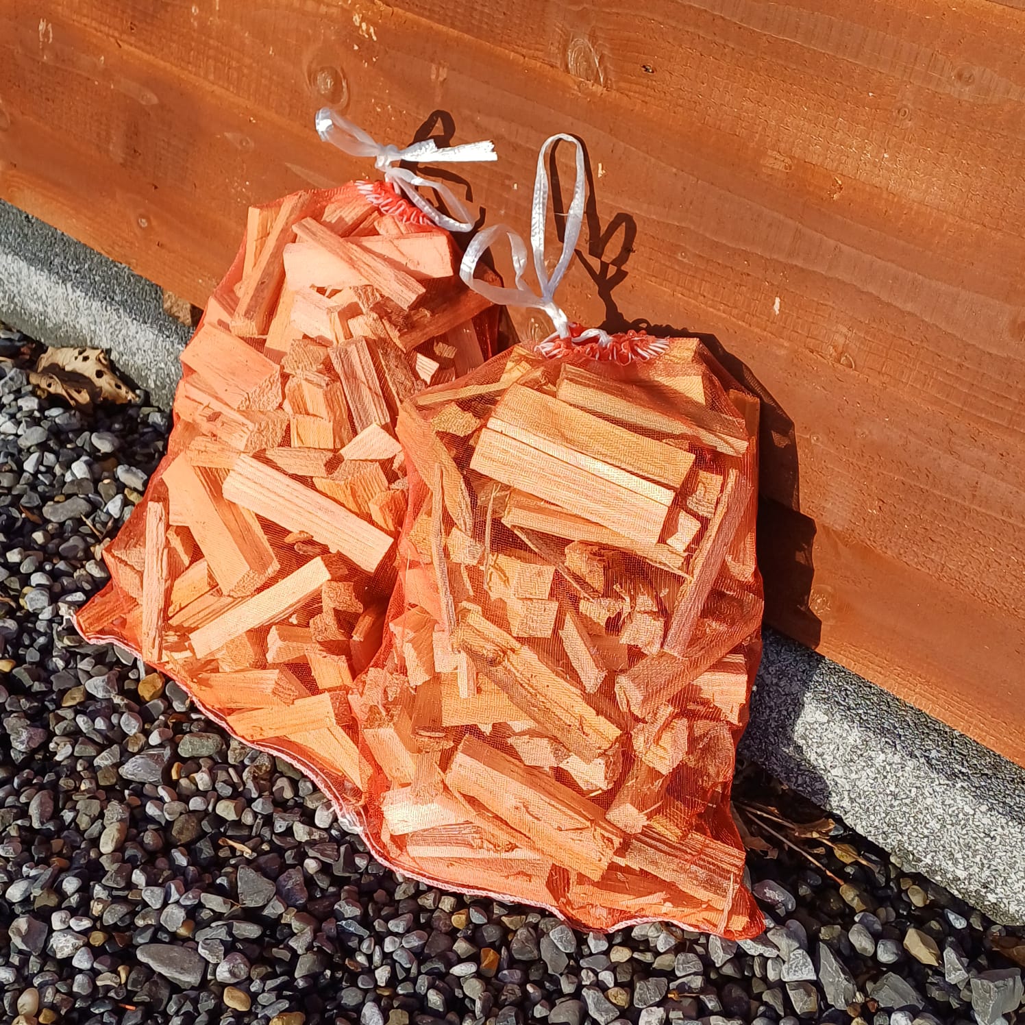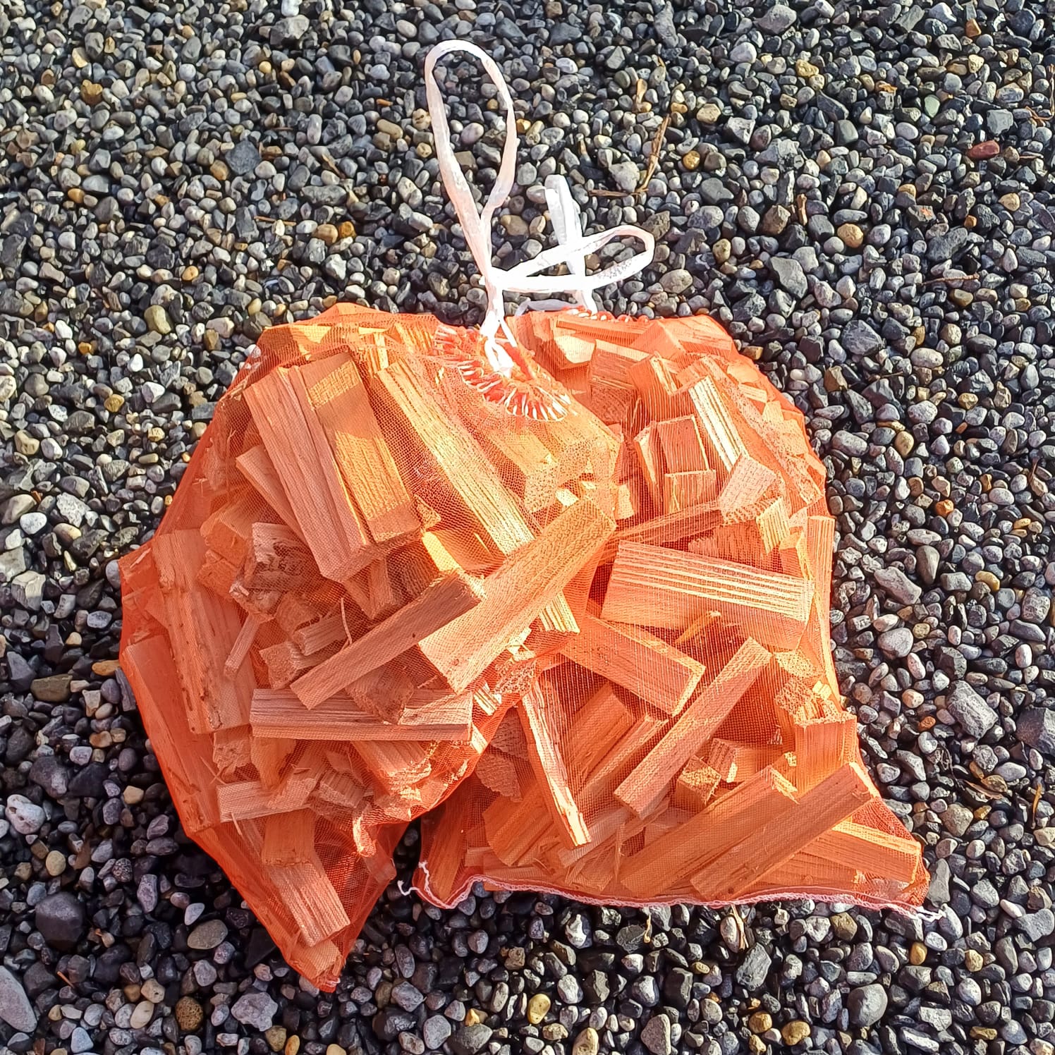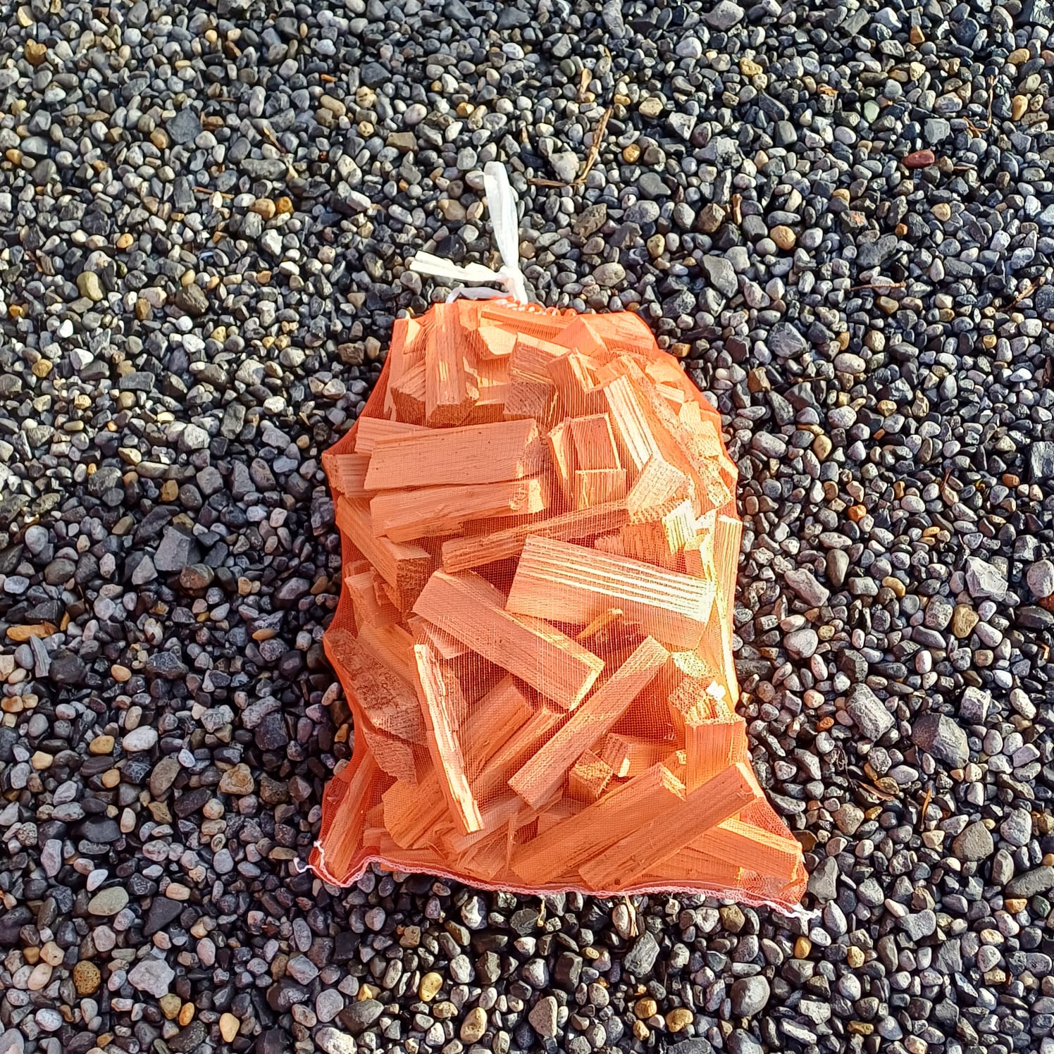 - Seasoned, air-dried small bags of softwood (spruce) kindling.